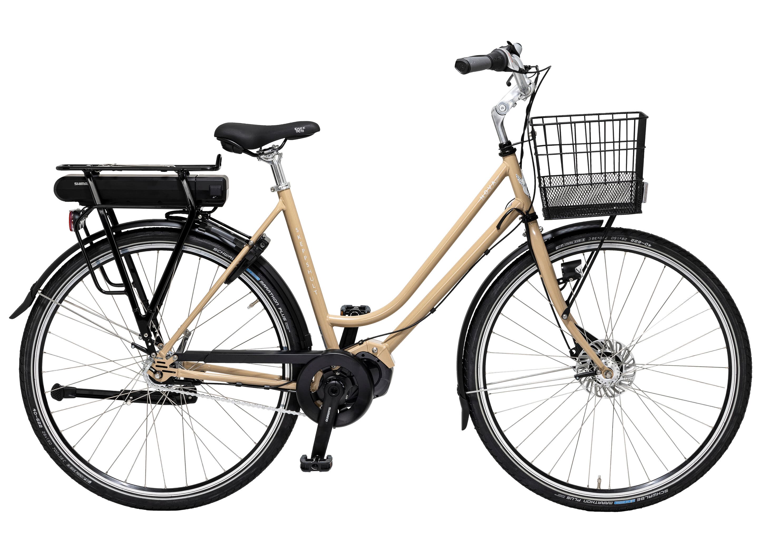 Skeppshult Nova Premium EL är utrustad med en kraftfull Shimano Steps DU-E6110 motor, som erbjuder en dynamisk och responsiv cykelupplevelse. Tack vare dess högklassiga batteri (418Wh) placerat på den stabila pakethållaren, kan du njuta av längre turer med en räckvidd på upp till 100 km.