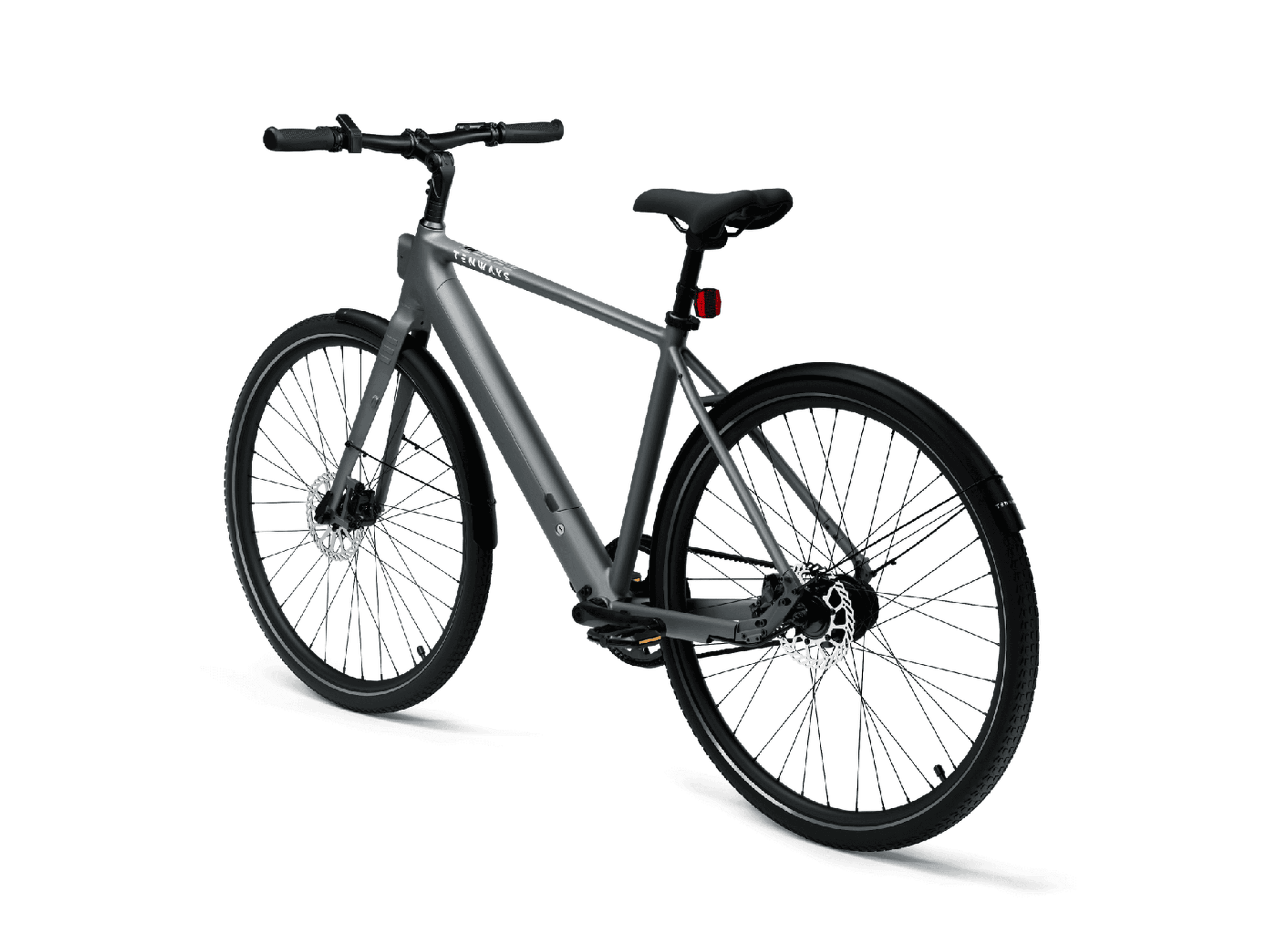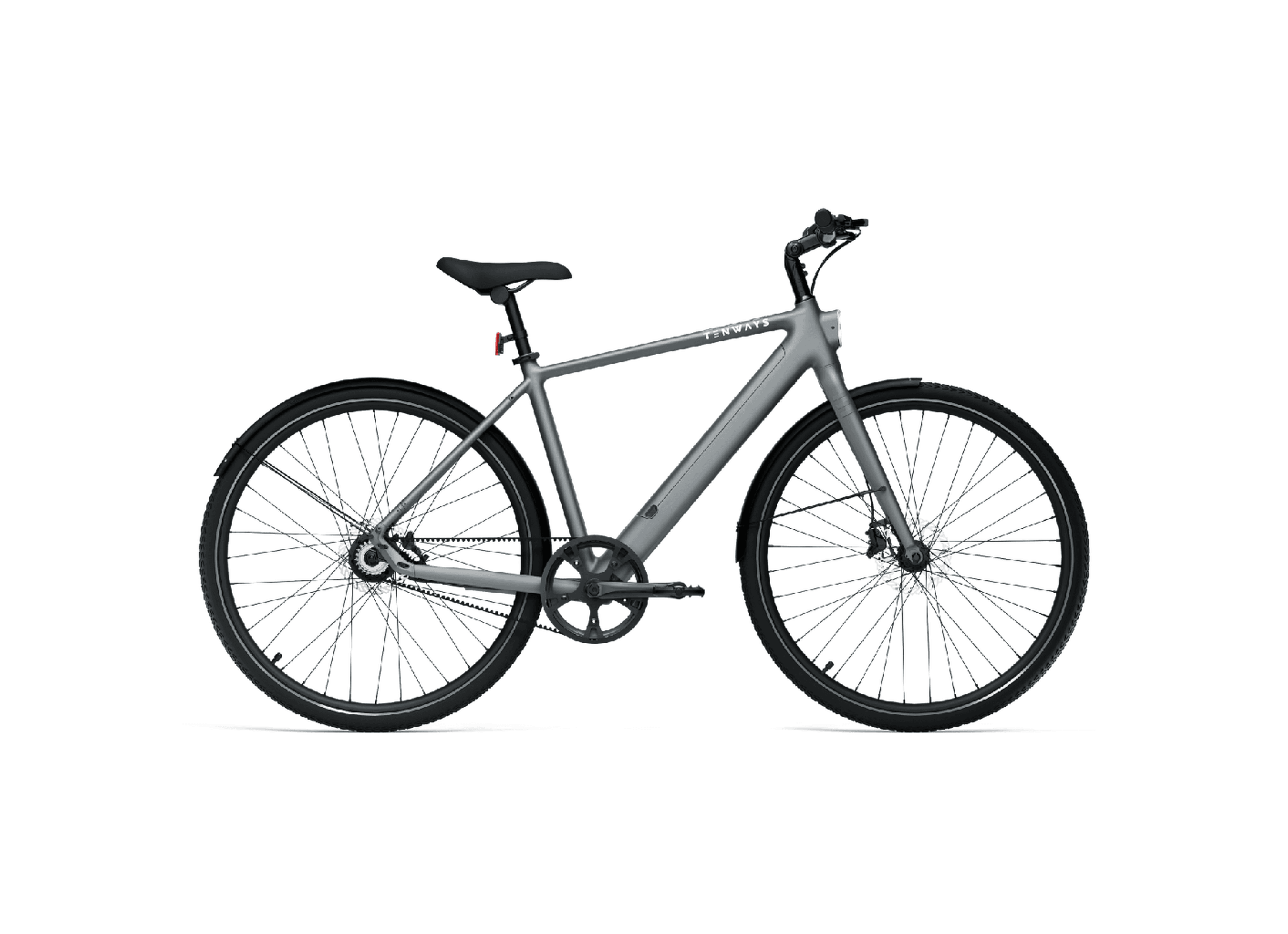 TENWAYS CGO600 Pro utmärker sig med sin moderna aluminiumram som ger cykeln en futuristisk känsla samtidigt som den behåller en lätt och robust struktur. Den helt integrerade belysningen säkerställer att du syns väl i alla ljusförhållanden, medan de praktiskt placerade stänkskärmarna och det stabila bakmonterade stödet förbättrar användbarheten i dagligt bruk.