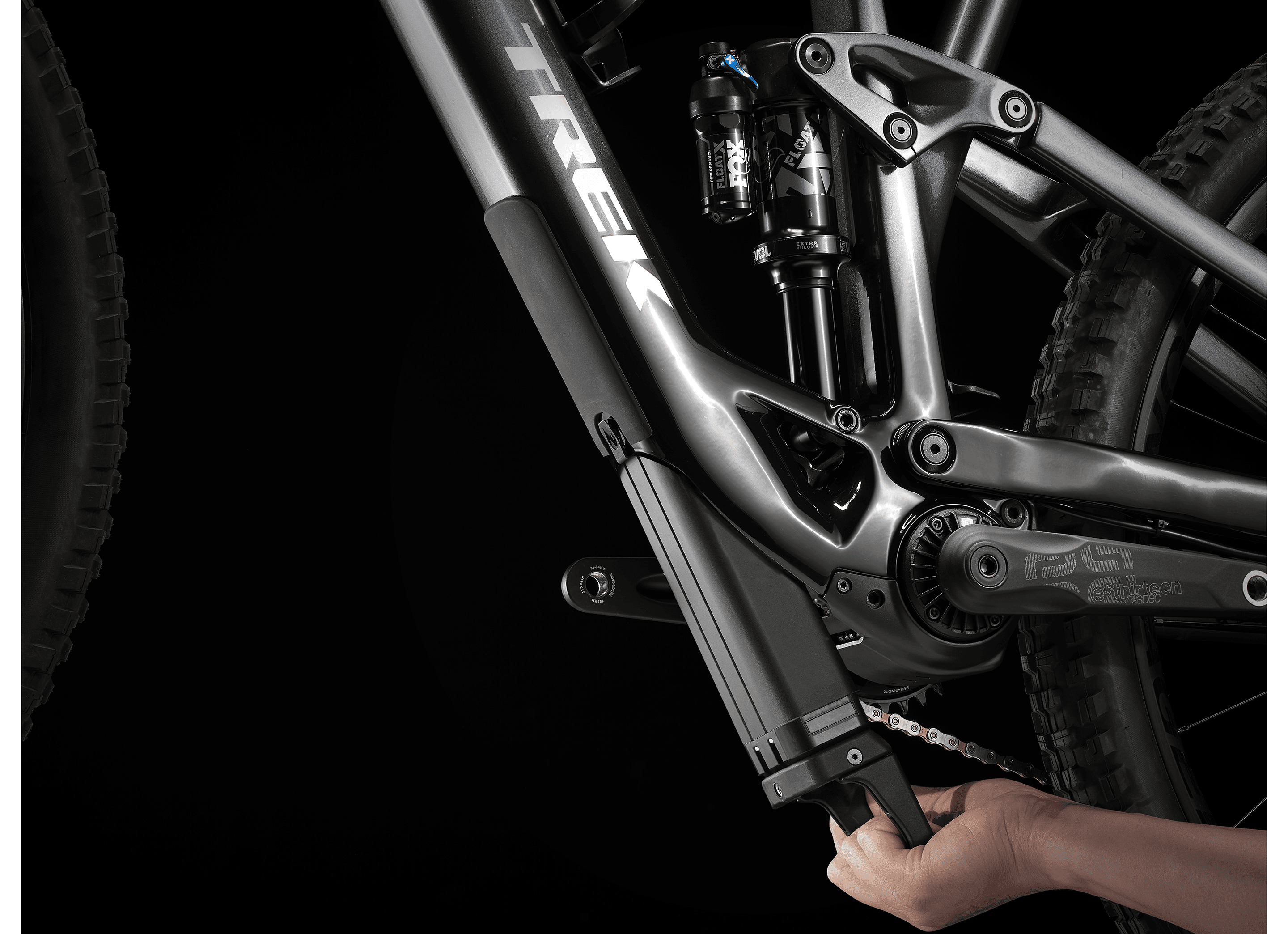 Med appen Trek Central kan du anpassa din cykel för personlig användning, aktivitetsspårning och analysera dina turer i realtid. Batteriet på 360 Wh är enkelt att ta loss för att ladda bekvämt och Active Braking Pivot ger dig större kontroll när du behöver det som mest.