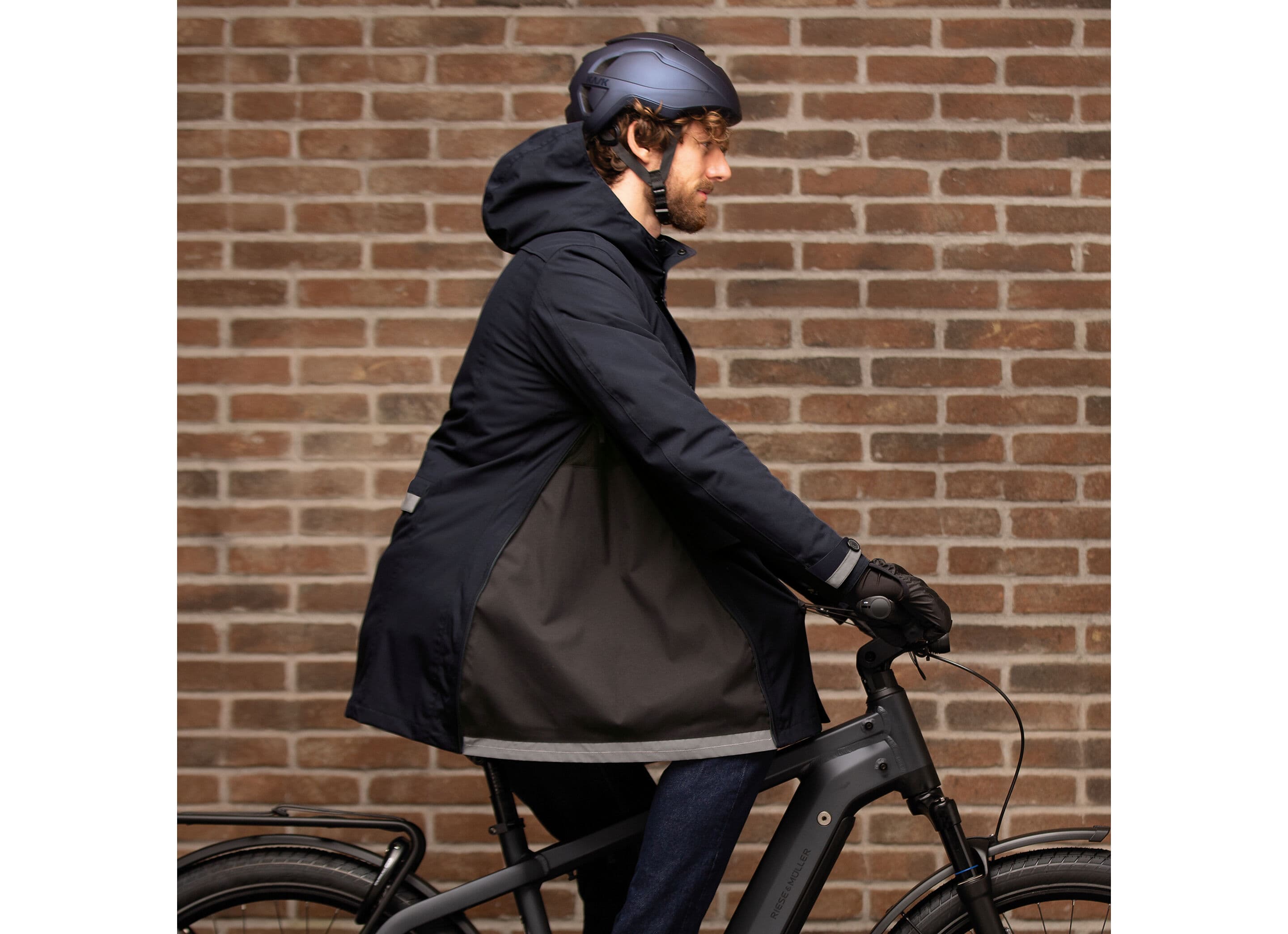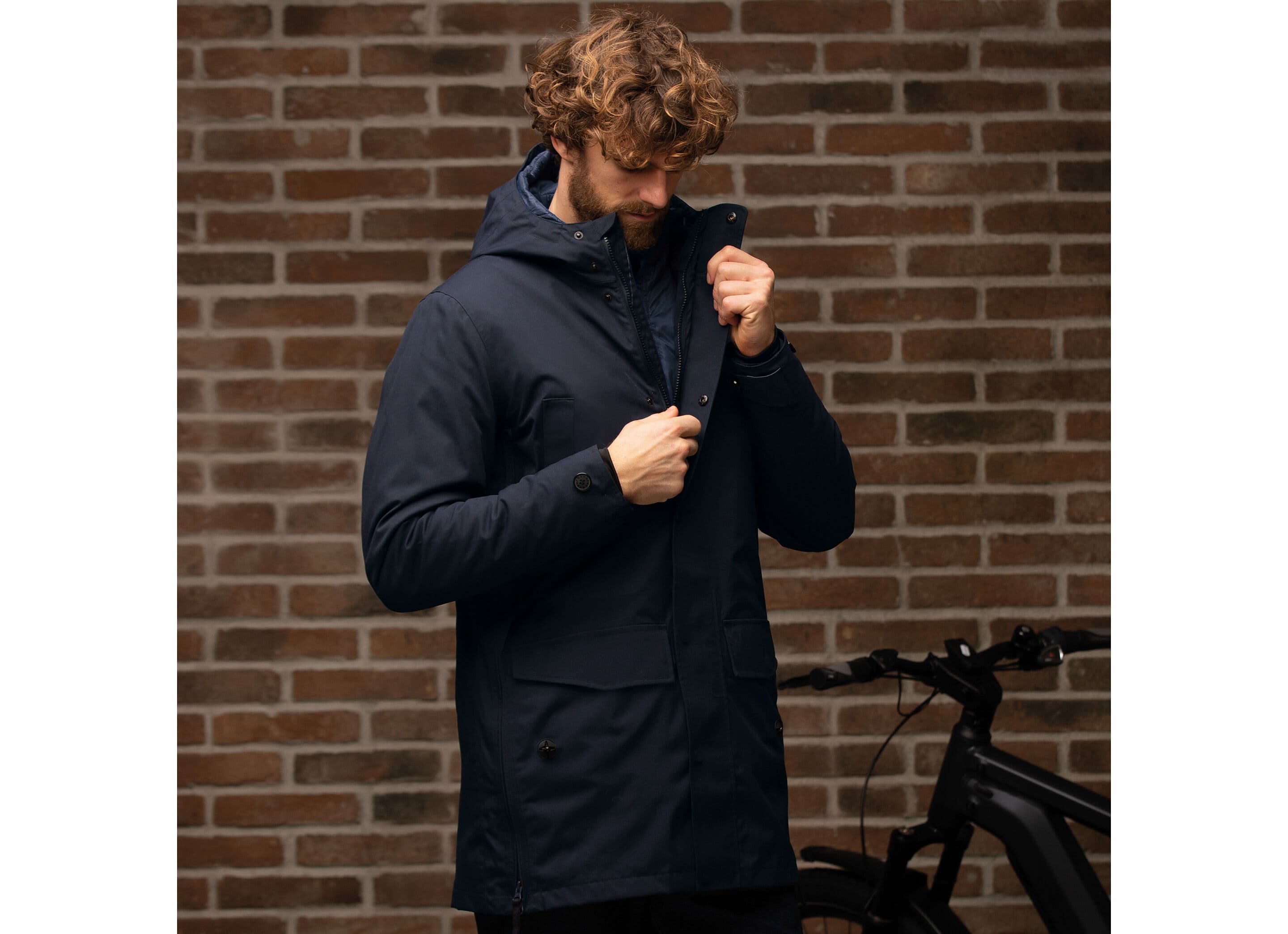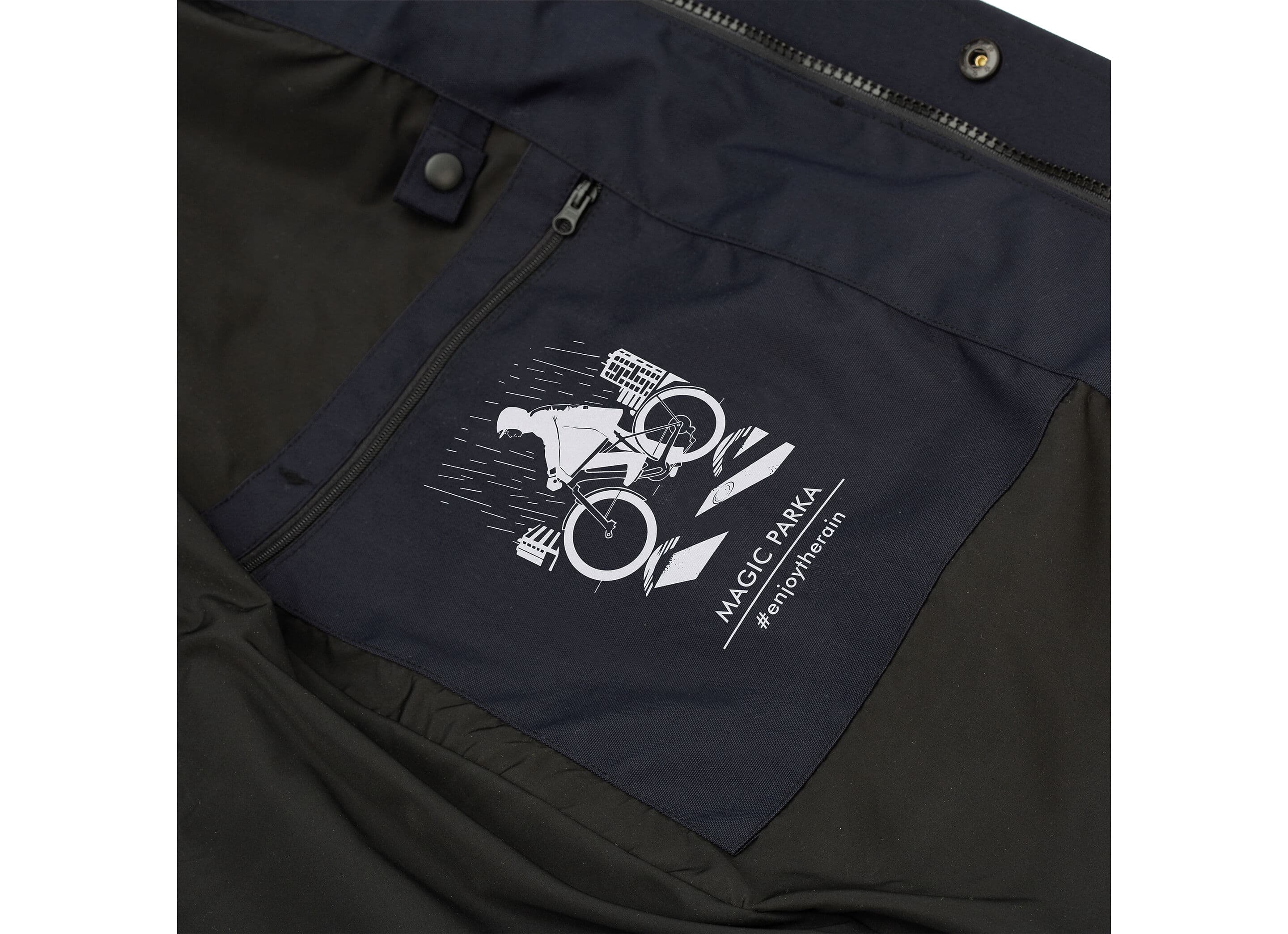 - Multifunktionell Design: Jackan inkluderar stora, osynliga sidoveck med dragkedjor för att omvandla parkasen till en cape–benöverdrag för cykling.