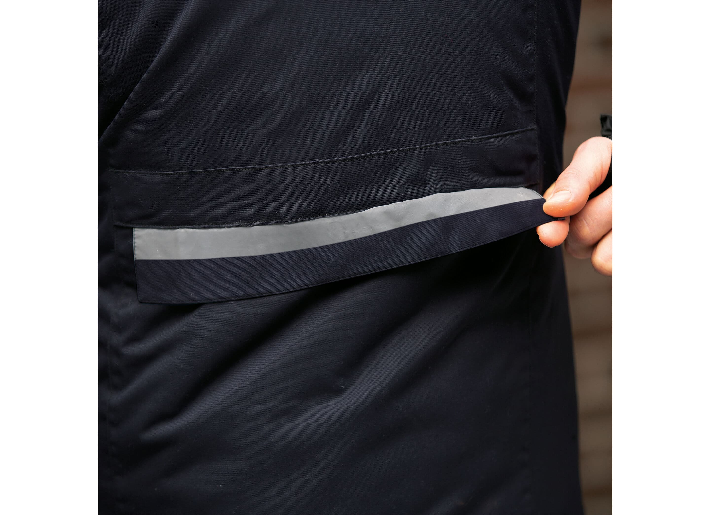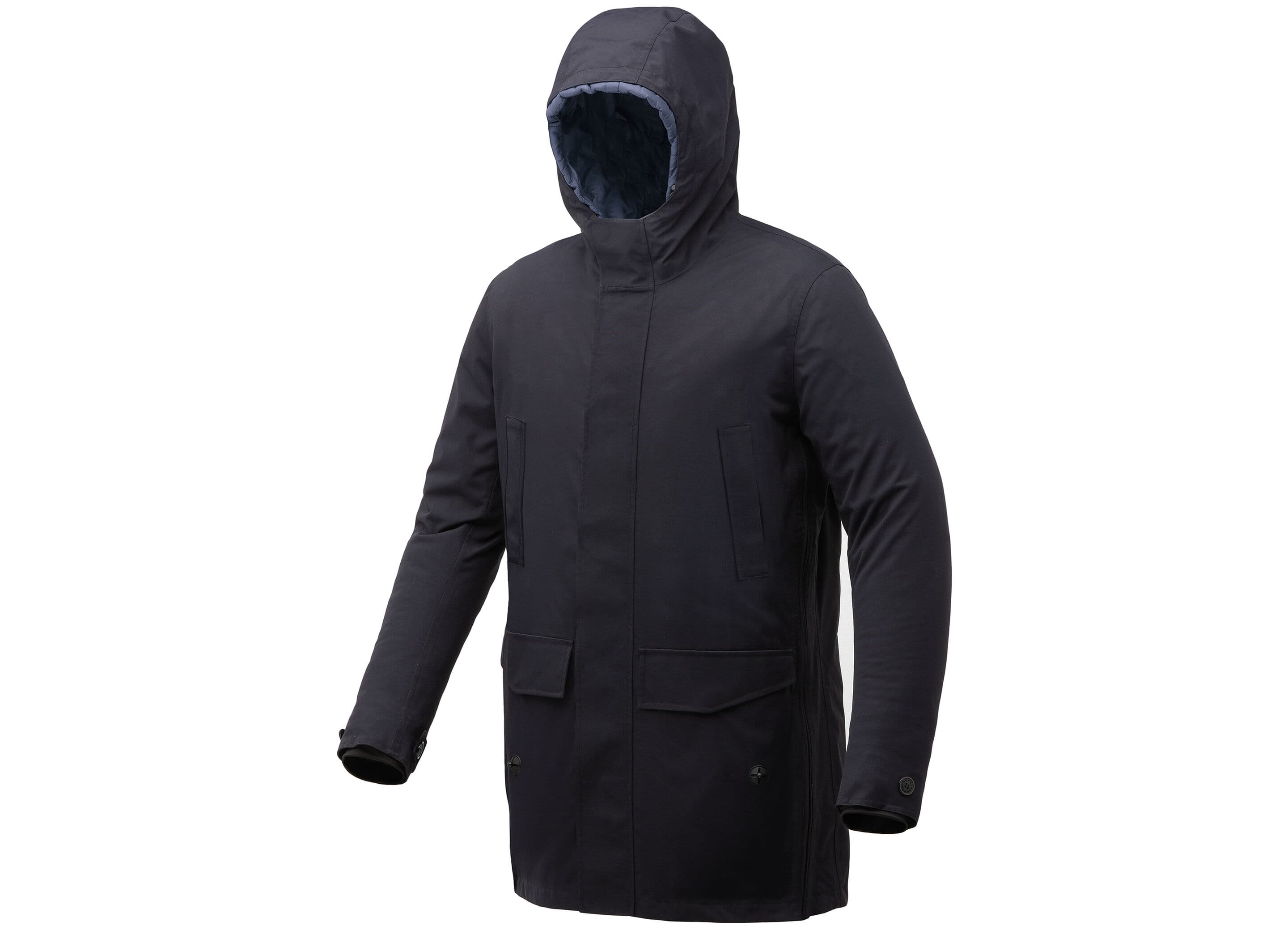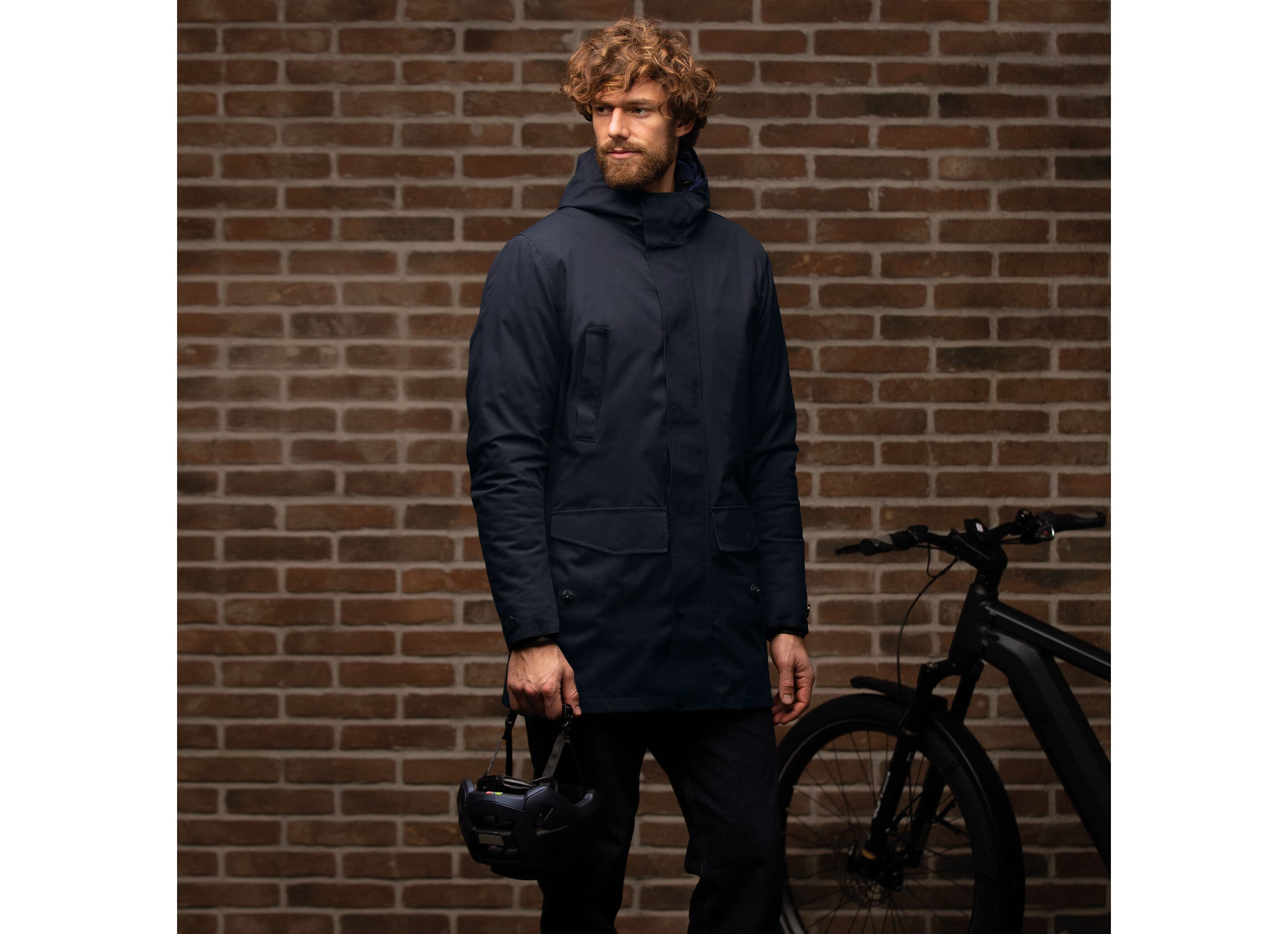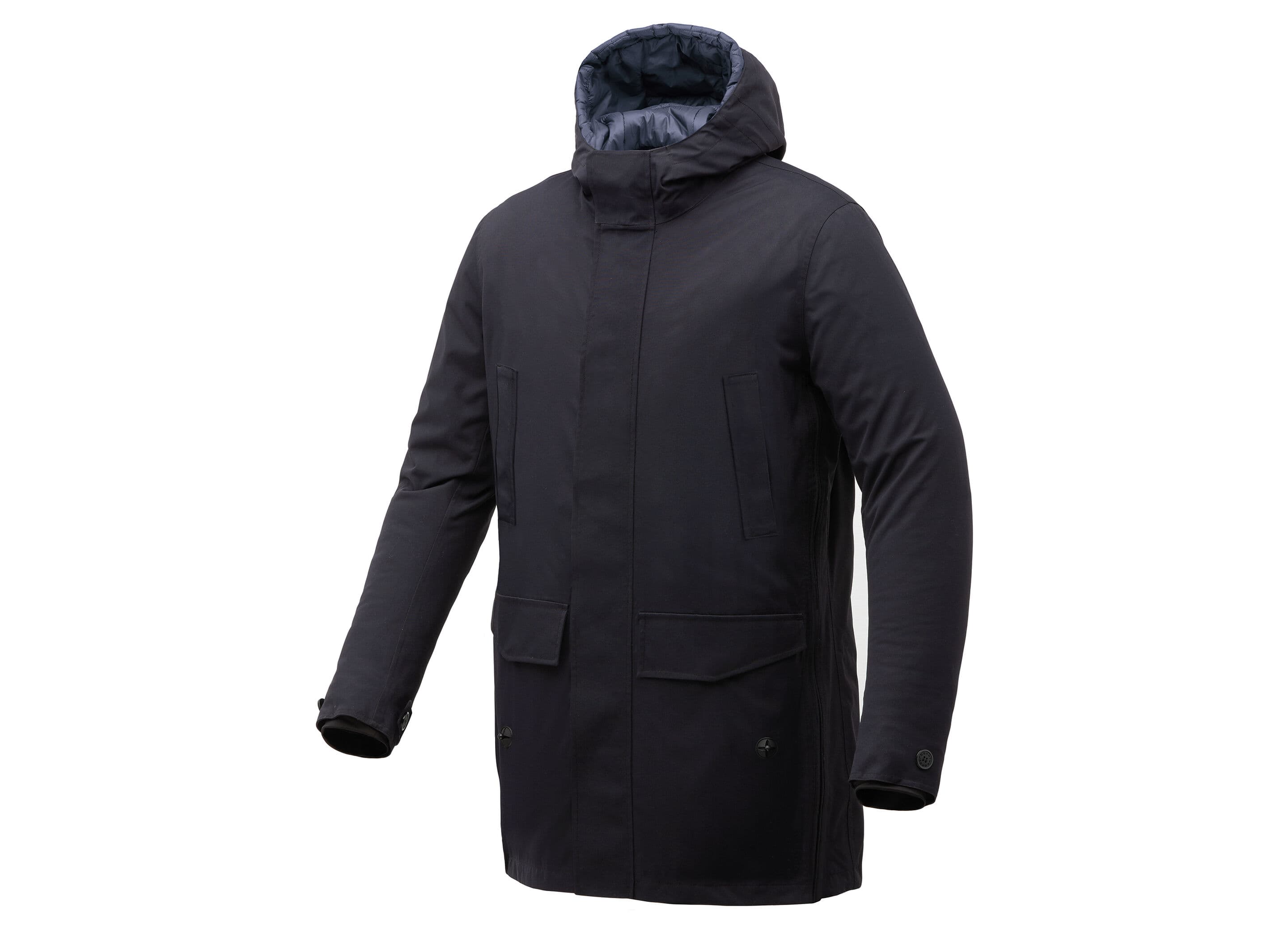 - Multifunktionell Design: Jackan inkluderar stora, osynliga sidoveck med dragkedjor för att omvandla parkasen till en cape–benöverdrag för cykling.