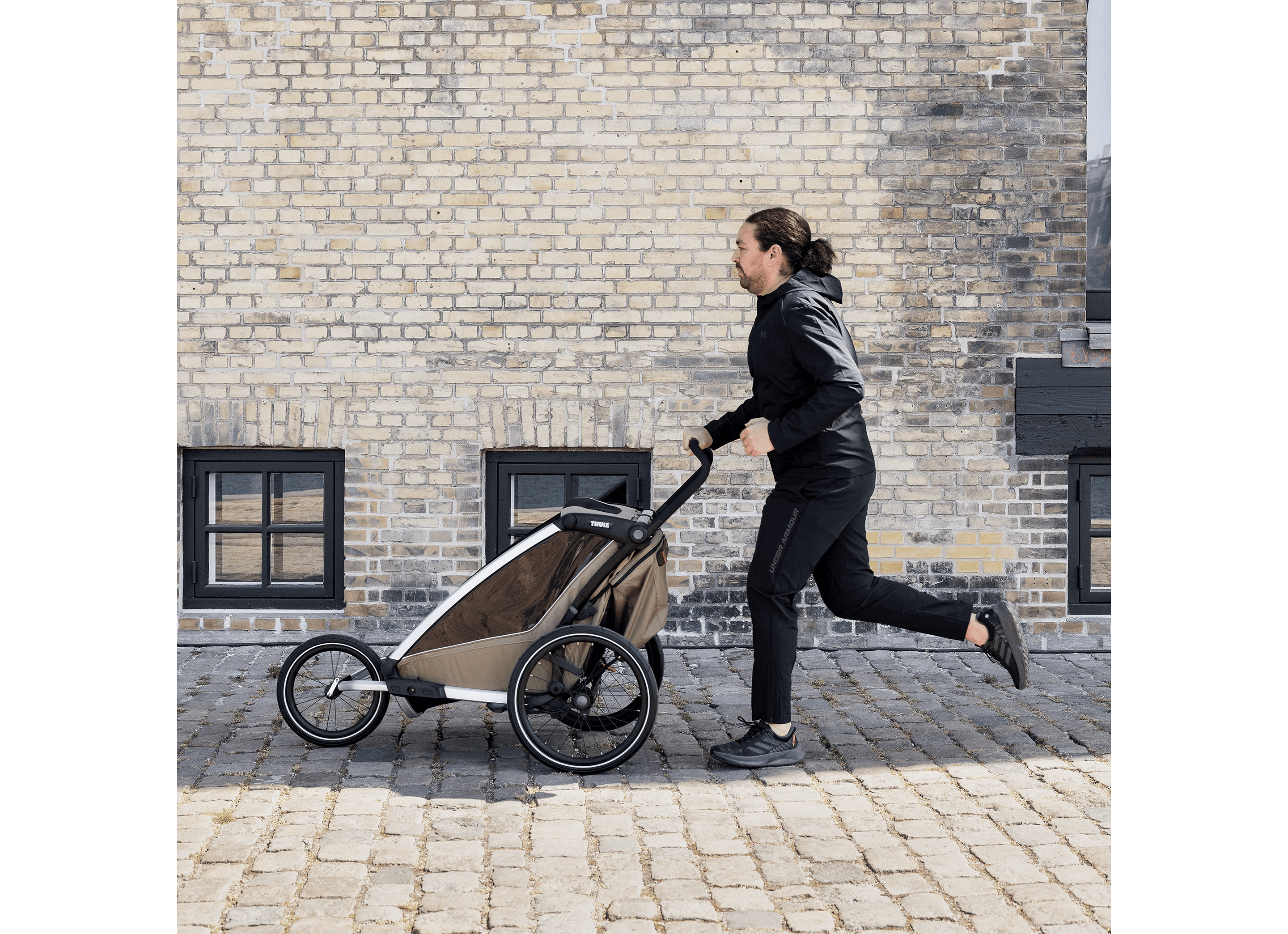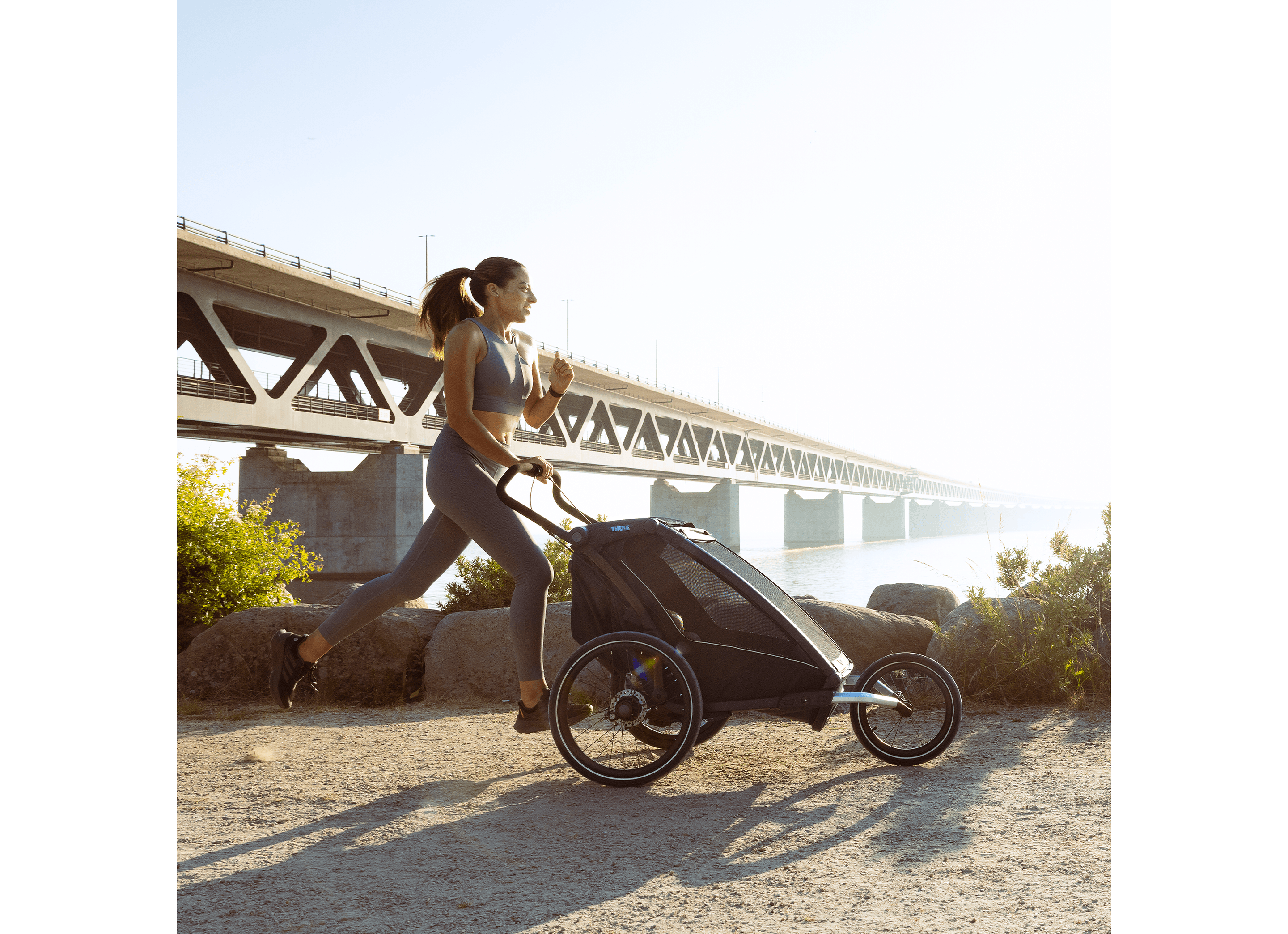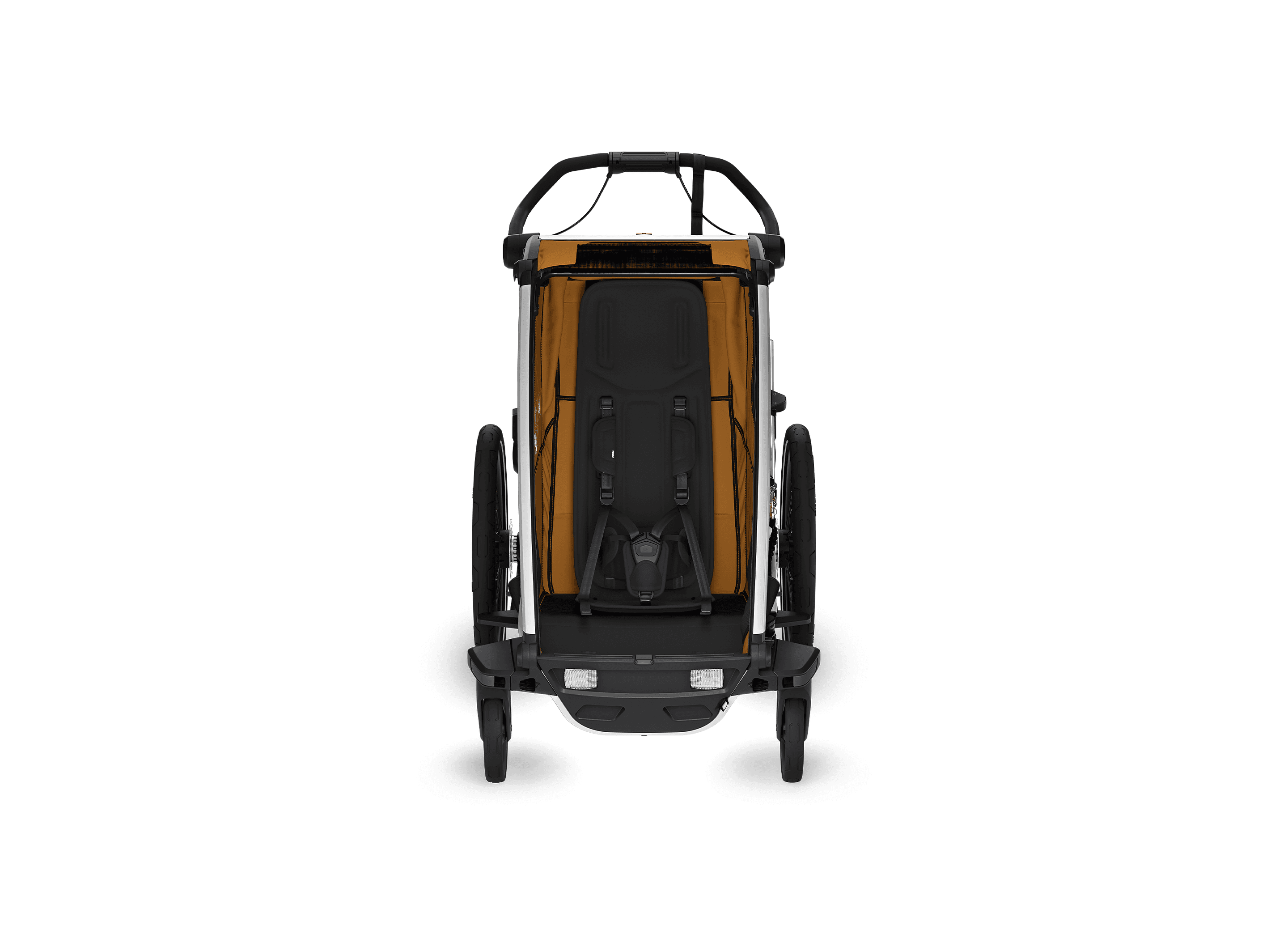 Denna mångsidiga vagn är perfekt för cykling, jogging, promenader och skidåkning. Kompatibel med tillbehör för jogging och längdskidåkning (säljs separat). Medföljande regnskydd och solskydd håller barnet torrt och skyddat i alla väder.