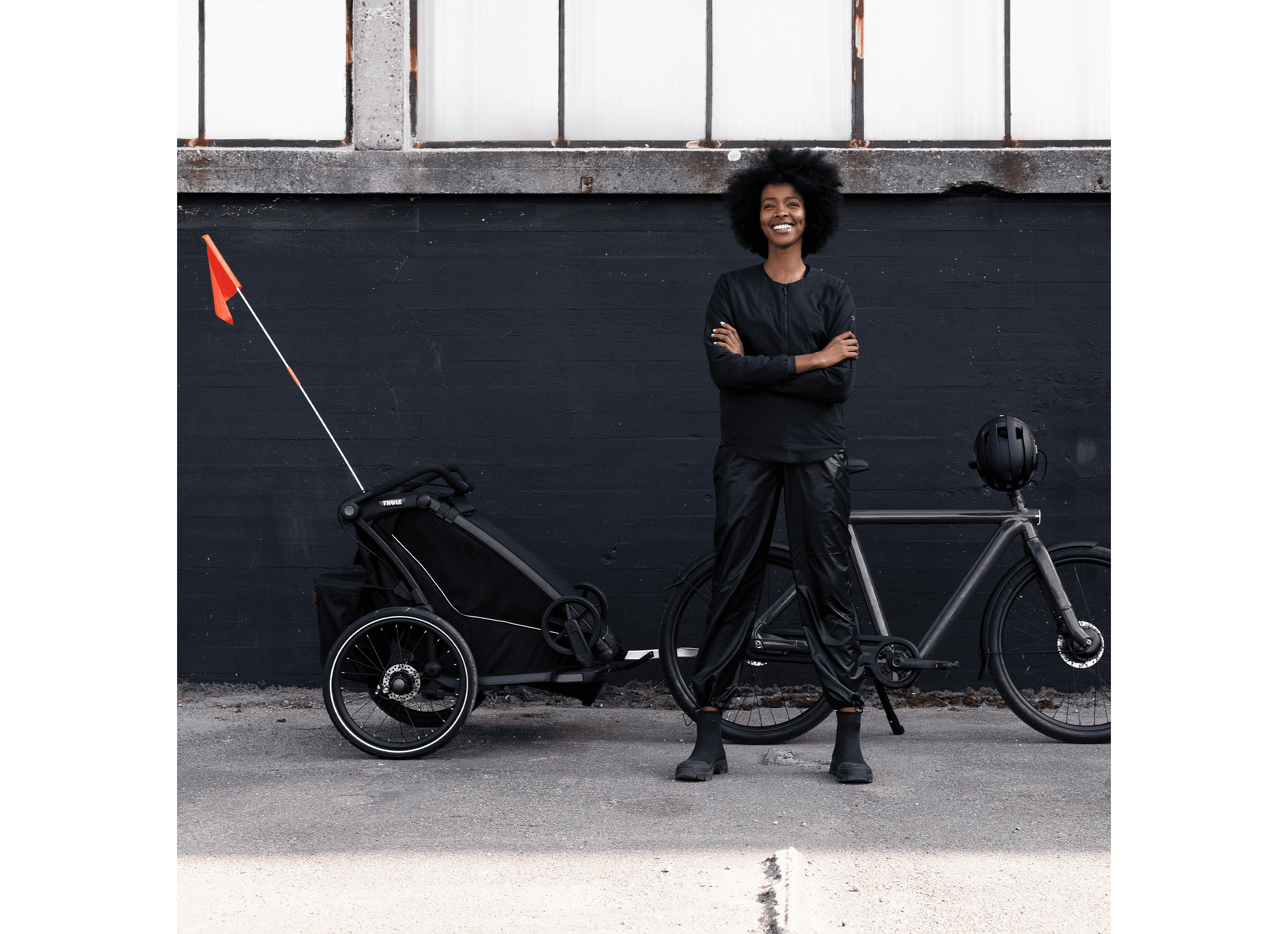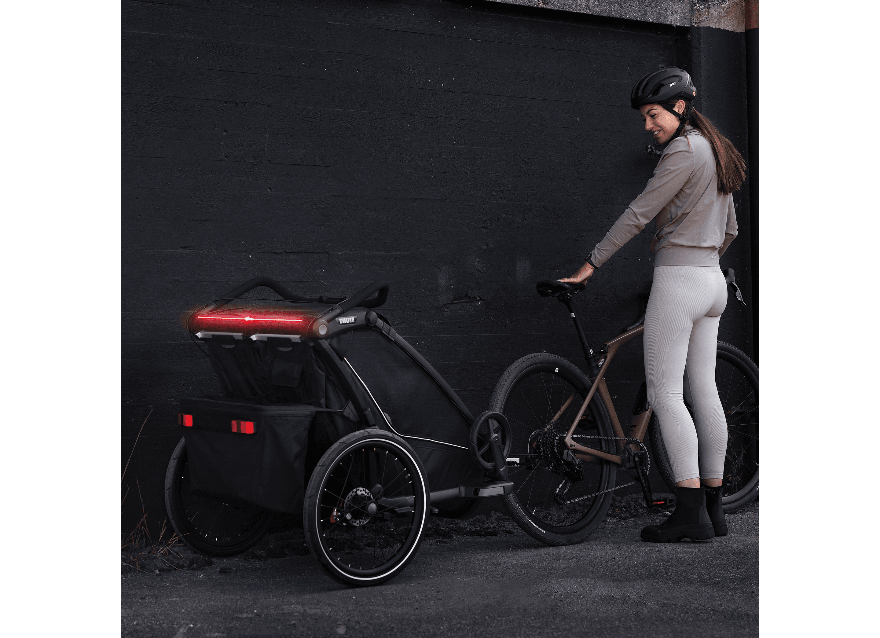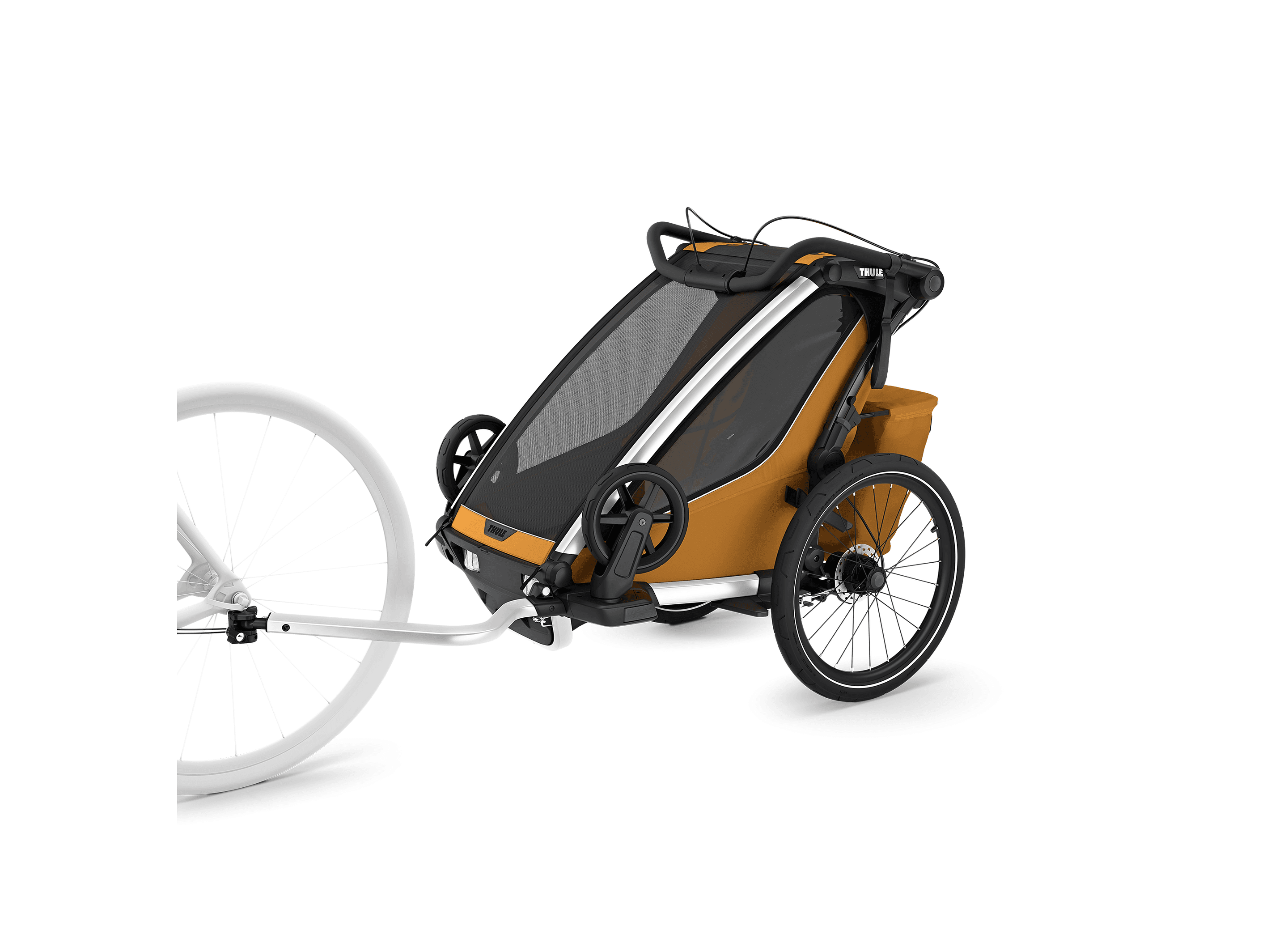 Det nya FlipWing-systemet gör det enkelt att växla mellan cykelläge och promenadläge, även medan vagnen är monterad på cykeln.