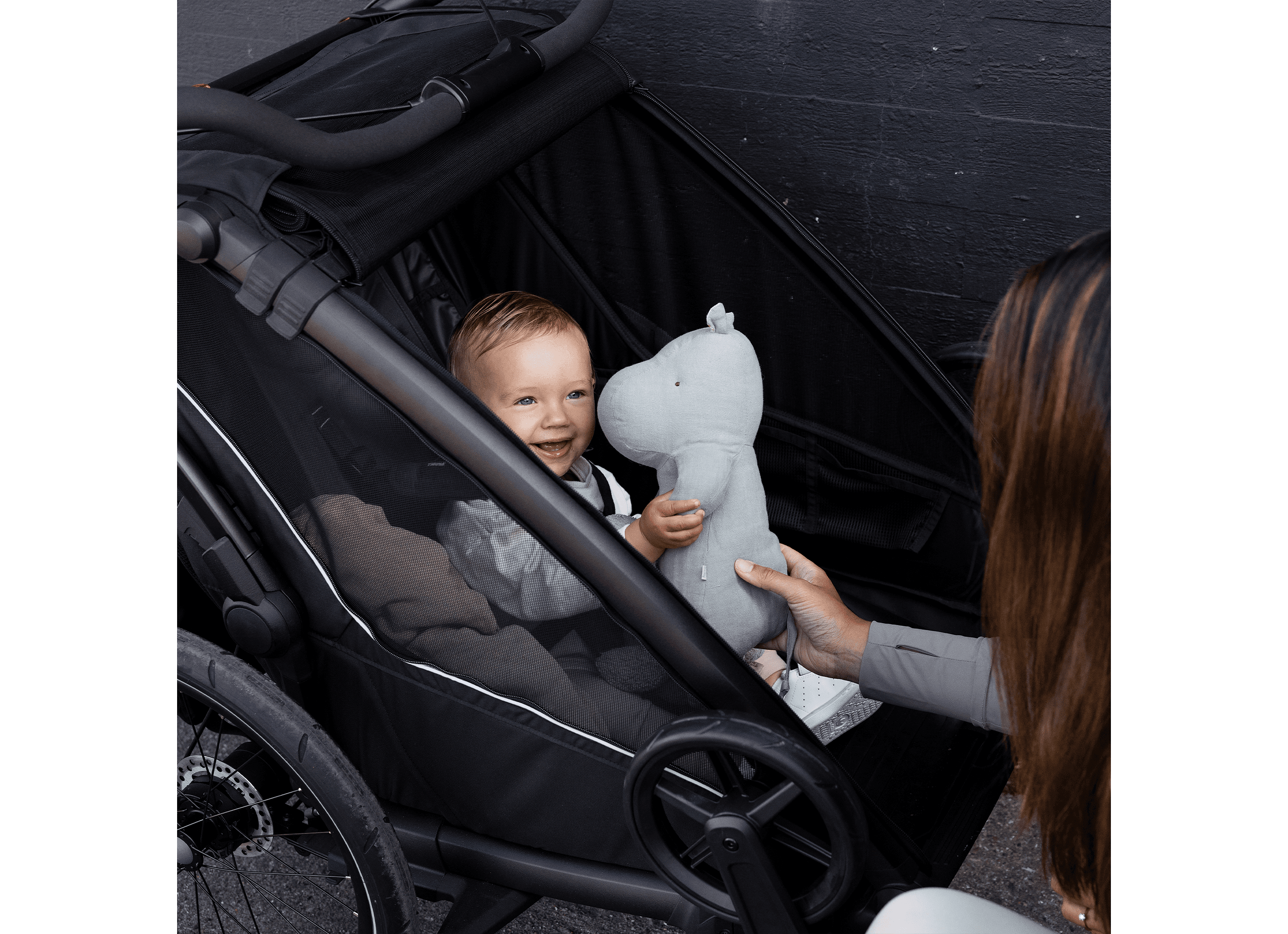 - Säker färd: Utrustad med 5-punkts säkerhetssele och reflekterande delar som ökar synligheten i trafiken.